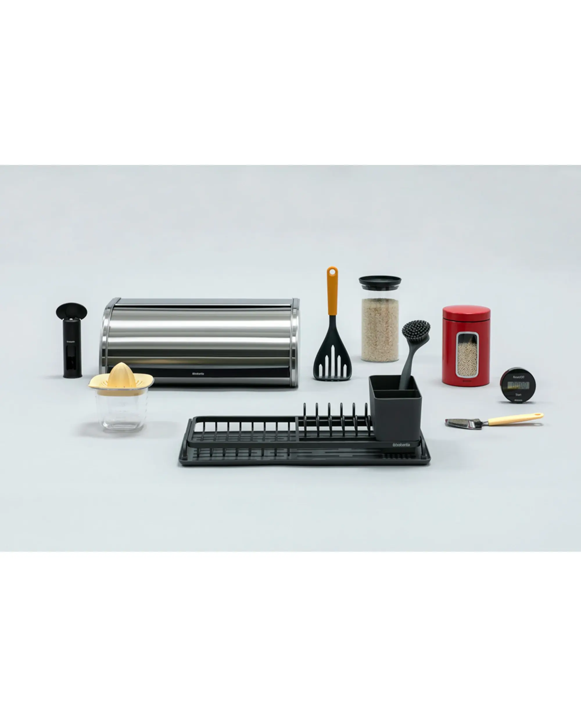 Сушете съдовете в кухнята със стил и удобство с този сушилник за съдове Brabantia Dark Grey. Той предлага много място за чинии, чаши, купи и прибори, като същевременно осигурява чист и сух кухненски плот благодарение на своя умен дизайн с директно оттичане на водата в мивката.