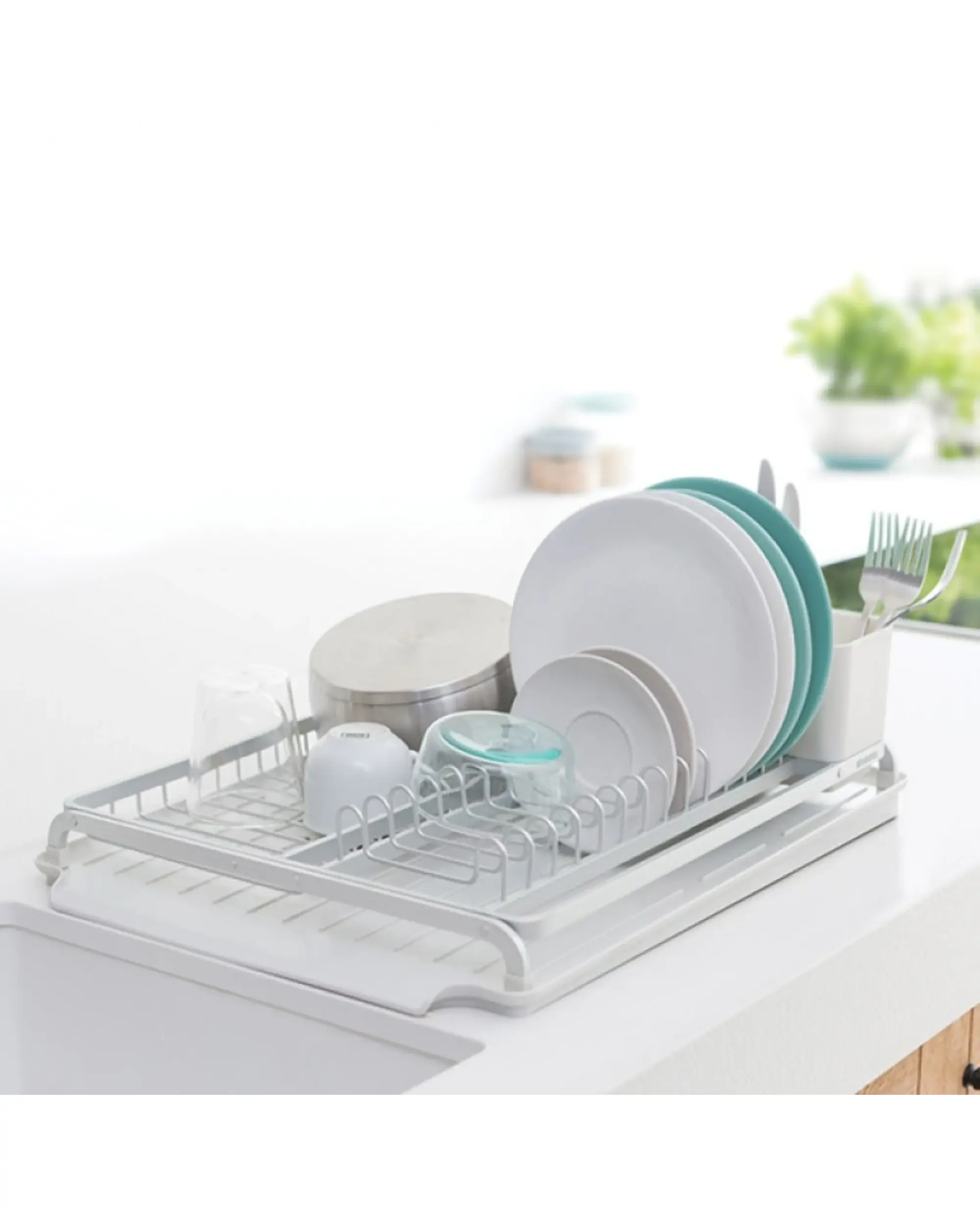 Сушилникът за съдове Brabantia Light Grey съчетава стил, практичност и високо качество, за да направи ежедневието в кухнята по-лесно и по-подредено. Той предлага просторно място за чинии, чаши, купи и прибори, като същевременно осигурява интелигентно отвеждане на водата директно към мивката – без мокри плотове и задържане на вода.