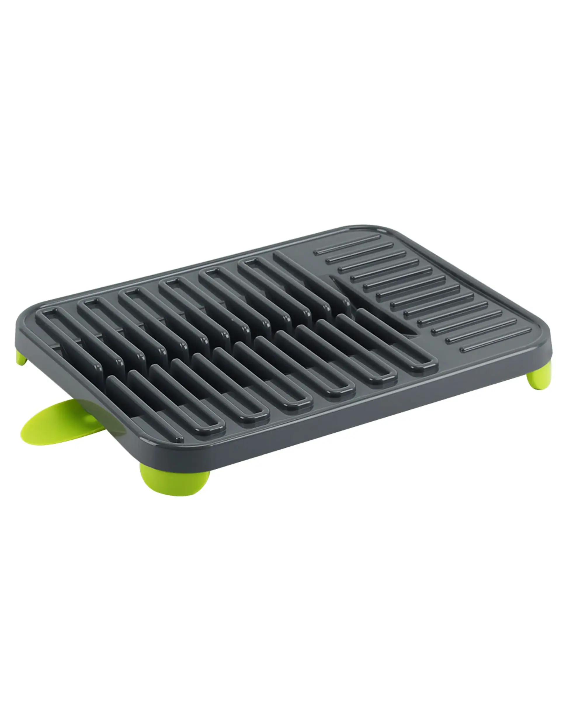 Компактен сушилник за съдове от пластмаса – устойчив, лесен за почистване и подходящ за ежедневна употреба.