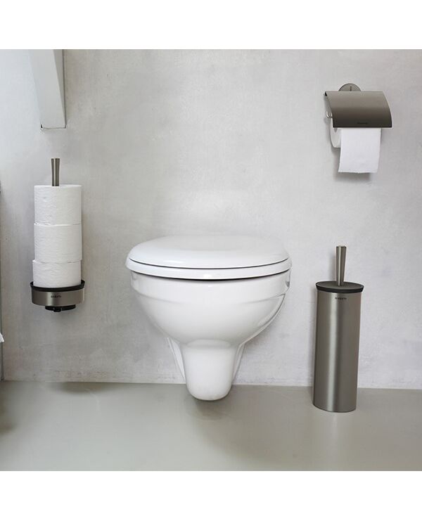 Ако искате да създадете елемент на дизайнерски интериор в банята и тоалетната, можете да съчетаете цветово четка за тоалетна, държач за тоалетна хартия, диспенсър за сапун и кош с педал, кош за хартия или кош за стена от Brabantia. А в сериите Matt Steel и Brilliant Steel можете да добавите и държач за резервна тоалетна хартия в същия стил.