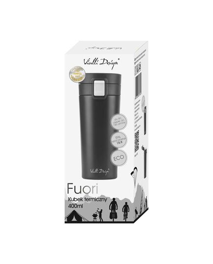 Термо чашите Fuori на Vially Design са идеални за съхранение на кафе или чай. В тях горещите напитки ще запазят температурата си до 8 часа, докато при студените може да се разчита за поддържане на температурата до 18 часа. Всичко това е възможно благодарение на стоманената вакуумна изолация. Такава термо чаша ще ви бъде чудесен спътник по време на разходки, излети в природата, а също и на дълги пътувания - използването й е изключително лесно и приятно. Предимства на продукта: Стоманена (18/8) вакуумна изолация, осигуряваща максимално поддържане на подходящата температура за топли напитки до 8 часа и студени напитки до 18 часа Модерен дизайн Удобна за държане, пасва идеално в ръката Лека и компактна форма за лесно транспортиране и съхранение Външната част не се нагрява при пълнене с топли напитки и не кондензира при пълнене със студени напитки Идеална за употреба на открито и при пътуване Лесно се отваря с палец Бутон с възможност за заключване