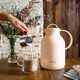 Термокана със стъклена вложка с вместимост 1 литър от серията Amo на Vialli Design. Практична и функционална кана, която е идеална за бизнес срещи или семейни тържества. Вътре в каната има стъклена вакуумна изолация, която гарантира поддържане на правилната температура до 24 часа, както за студени, така и за топли напитки. Стените на каната не се нагряват при съхранение на горещи течности в нея и не кондензират при съхранение на охладени течности. Най-високото качество на материалите използвани за производството на термоса. Удобната дръжка на каната, профилираният чучур, винтовият капак с дръжка и ниското тегло я правят изключително удобна за използване. С класическия си, неутрален цвят ще се слее грациозно с всеки интериор. Производителят не препоръчва почистване в съдомиялна машина.